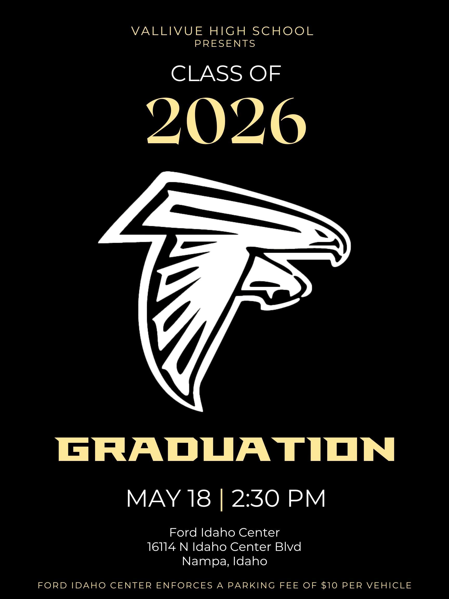 Vallivue High School Graduation will be May 18th!  Please see the flyer for more detailed information.